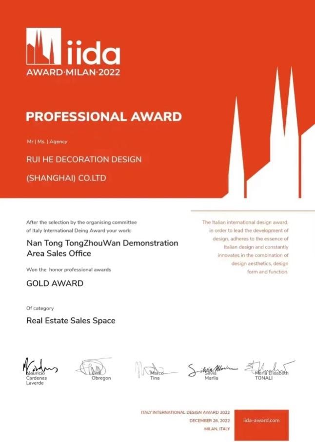 近日,盛和房產(chǎn)開(kāi)發(fā)的盛和?灣上文華項(xiàng)目(通州灣TR20011地塊)示范區(qū)售樓處設(shè)計(jì)方案從全球包括意大利、法國(guó)、西班牙、日本、韓國(guó)、中國(guó)及港澳臺(tái)等幾十個(gè)國(guó)家地區(qū)的設(shè)計(jì)師和設(shè)計(jì)機(jī)構(gòu)近千套設(shè)計(jì)作品中脫穎而出,斬獲2022意大利IIDA AWARD國(guó)際設(shè)計(jì)大獎(jiǎng)地產(chǎn)售樓類金獎(jiǎng)。
