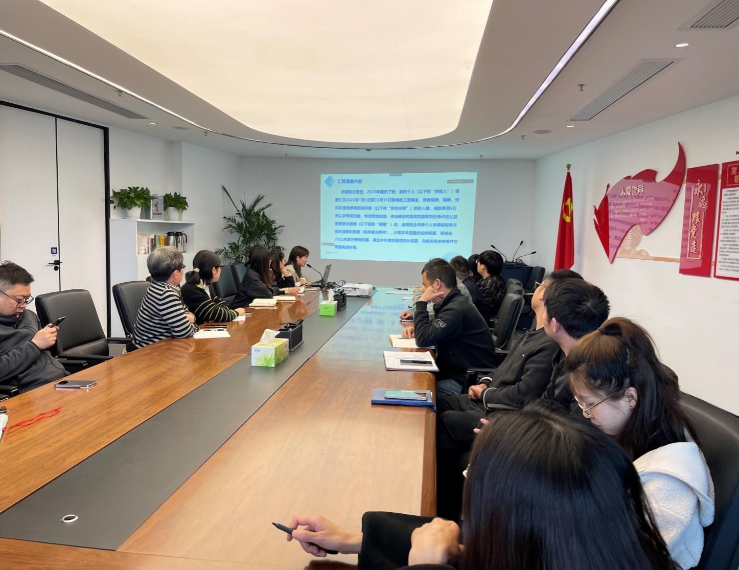 會上,財務部從個人所得稅匯算清繳內容、如何區分是否匯算清繳、可享受稅前扣除、專項附加扣除信息填報錯誤提醒、如何辦理匯算清繳五個方面進行了詳細地講解。在答疑互動環節中,與會人員就有疑問的事項積極提問,現場交流互動頻繁,取得了良好的培訓效果。